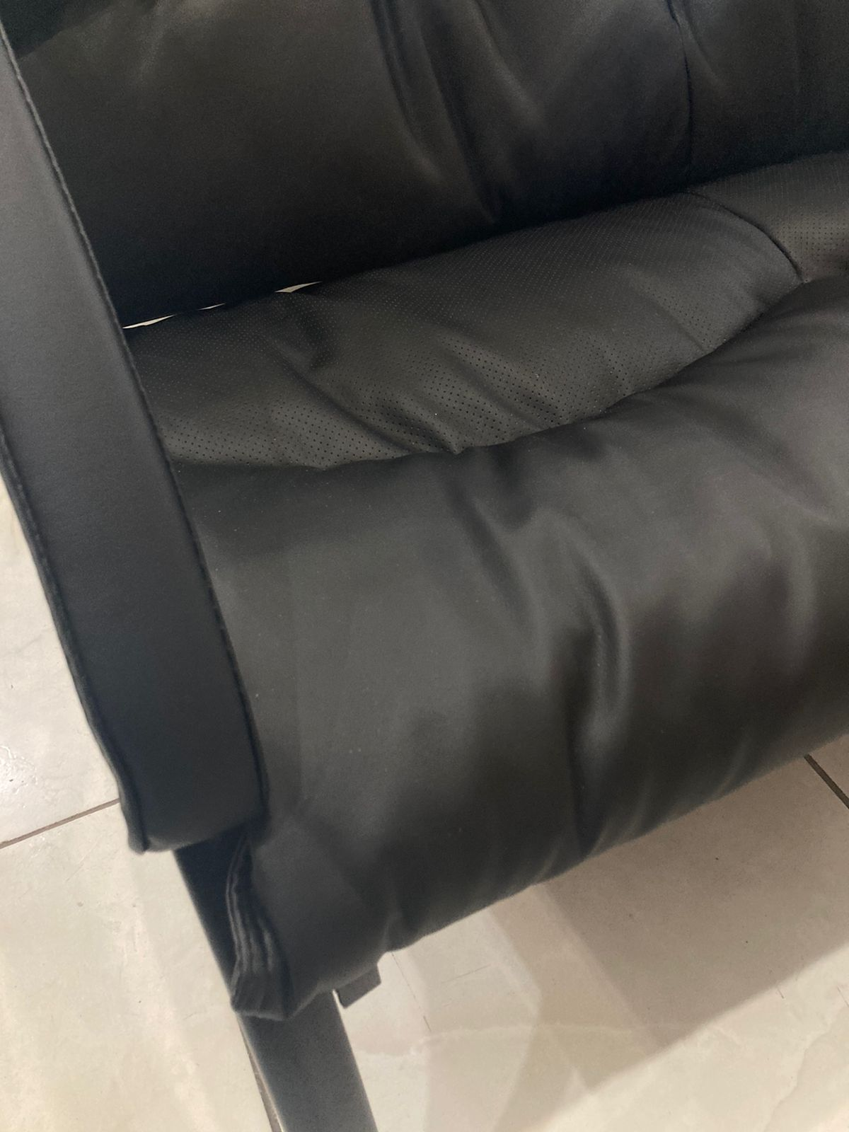Изготовленный из качественных материалов, диван отличается долговечностью и устойчивостью к повреждениям. Перфорированная черная ткань обивки добавляет оригинальности, а черный кожзаменитель на подлокотниках придает дополнительный шарм.
