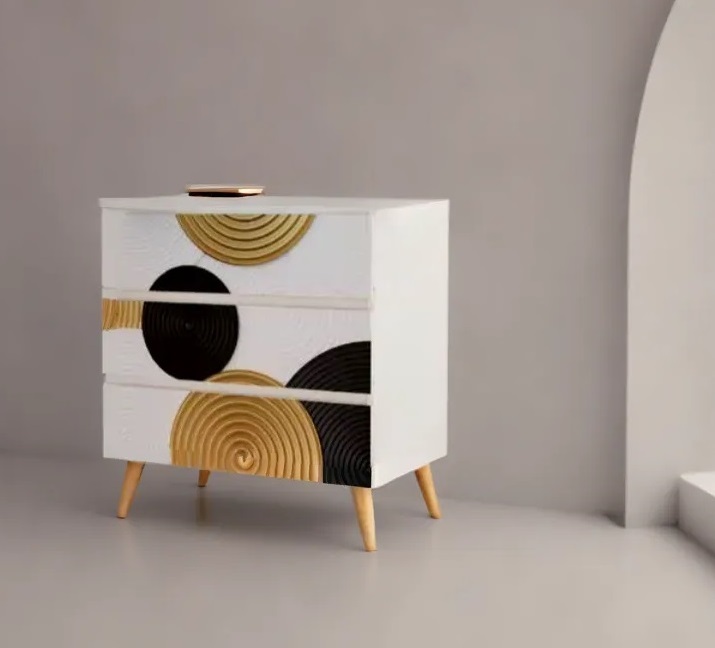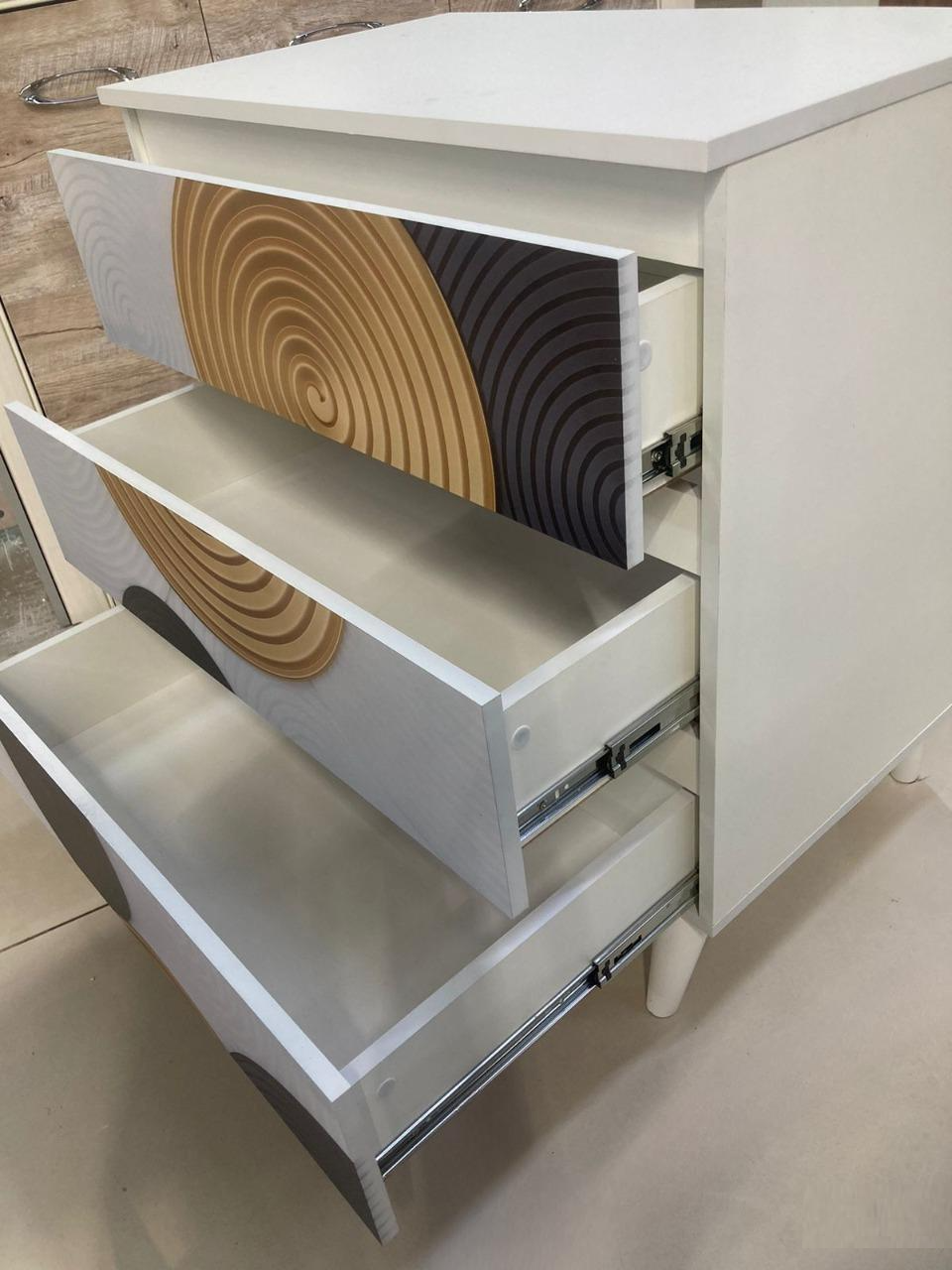 Уникальный дизайн: Белый цвет и узор из кругов придают комоду современный и оригинальный вид, который подойдет как для минималистичных, так и для более классических интерьеров.