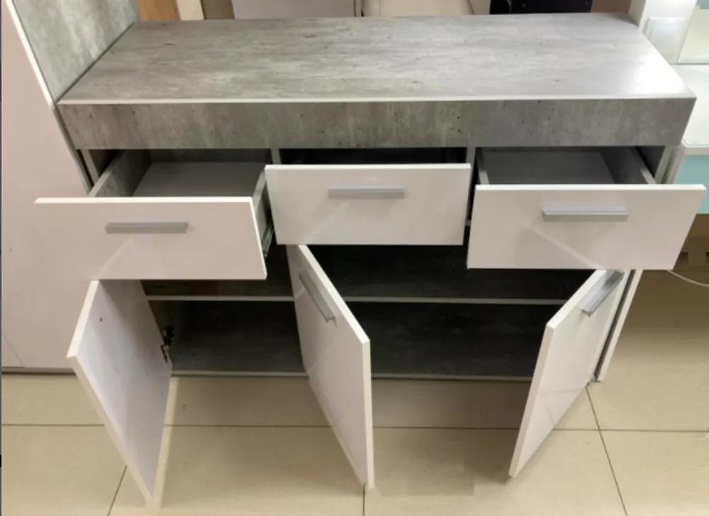 Этот элегантный комод, выполненный в сочетании бетонной отделки и белого цвета, станет идеальным дополнением интерьера вашего дома. Его универсальный дизайн и функциональность позволят вам легко адаптировать его под любые стилистические предпочтения и потребности. Ниже представлены ключевые особенности и преимущества этого мебельного решения.