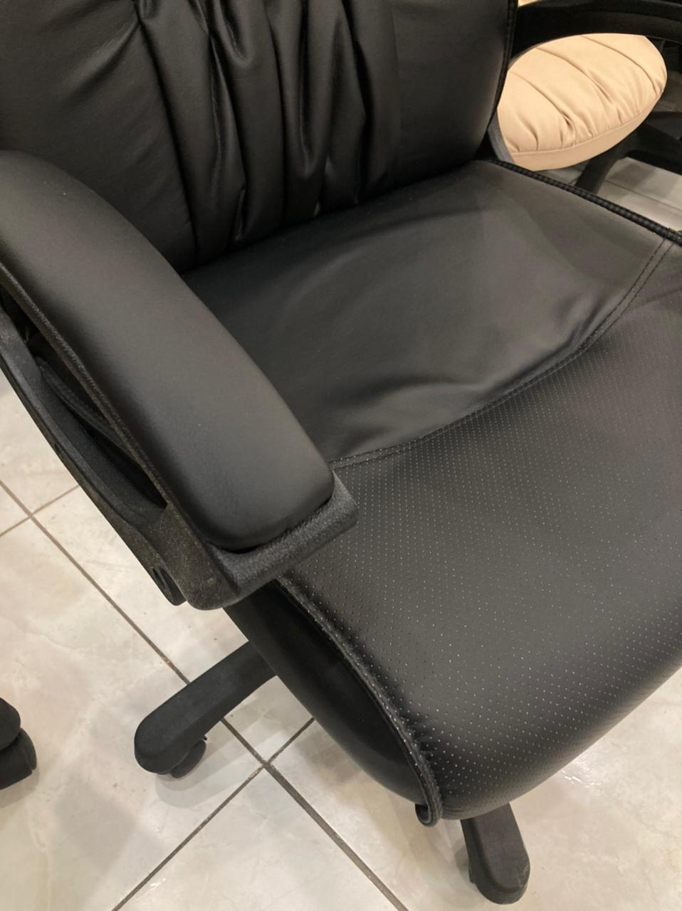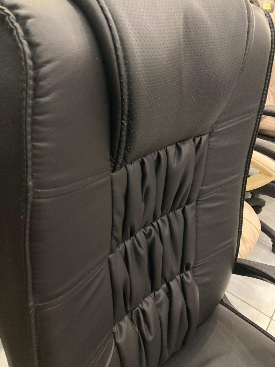 Качество материалов: Кресло изготовлено из прочного кожзаменителя, который легко чистится и устойчив к износу. Перфорированная поверхность способствует хорошей вентиляции, что особенно актуально в теплое время года.
