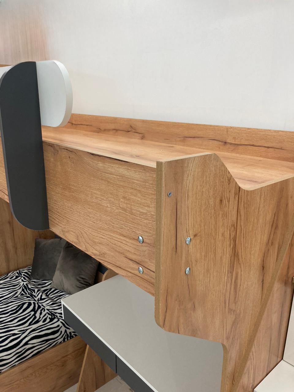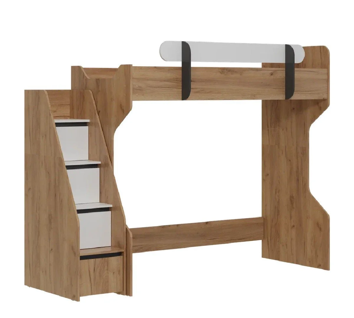 Модель оборудована высокими бортиками, которые гарантируют безопасность во время сна. Удобная лестница обеспечивает легкий доступ к верхнему уровню, а прочные крепления и надежные элементы конструкции дают уверенность в стабильности. Этот элемент мебели станет не только стильным акцентом, но и безопасным пространством для вашего малыша.