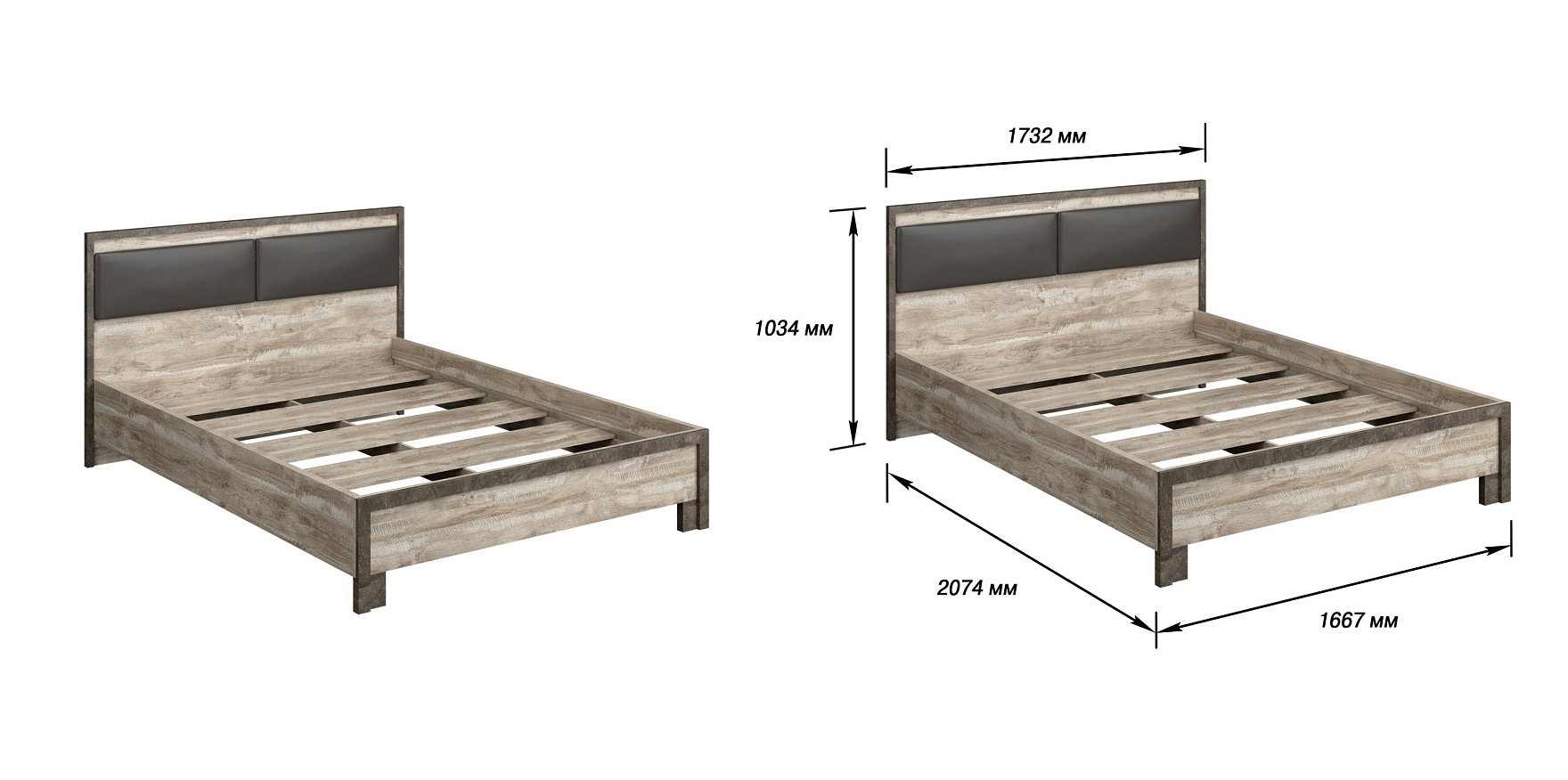 Кровать с настилом №2 Клео Дуб Юкон Ателье темное 1600 — Мебель от фабрики МЕБЕЛЬ МАРКЕТ