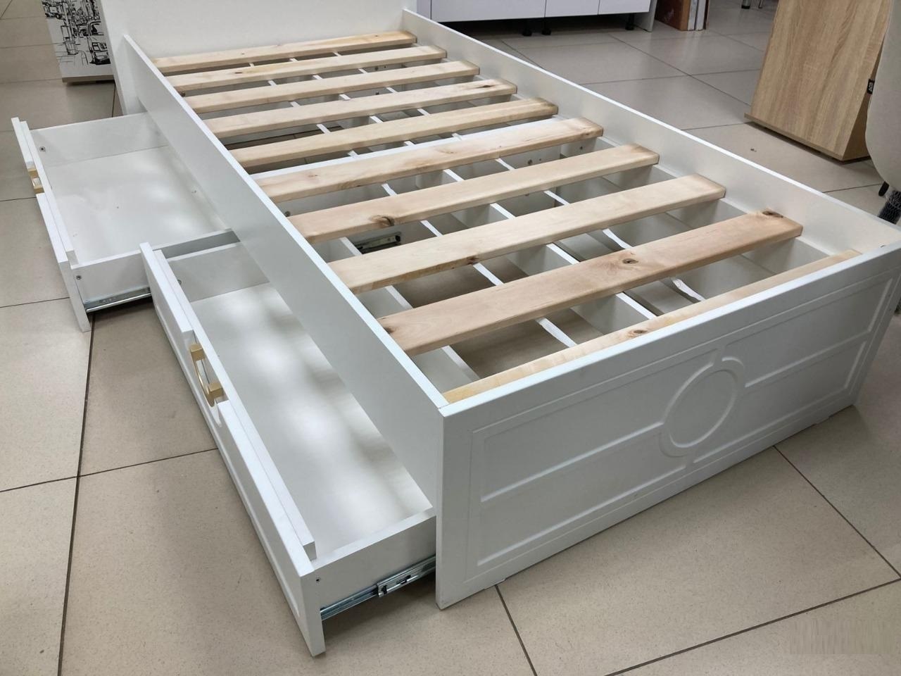 - Удобство хранения: встроенные ящики позволяют хранить постельное белье и другие вещи под рукой, не загромождая пространство комнаты.