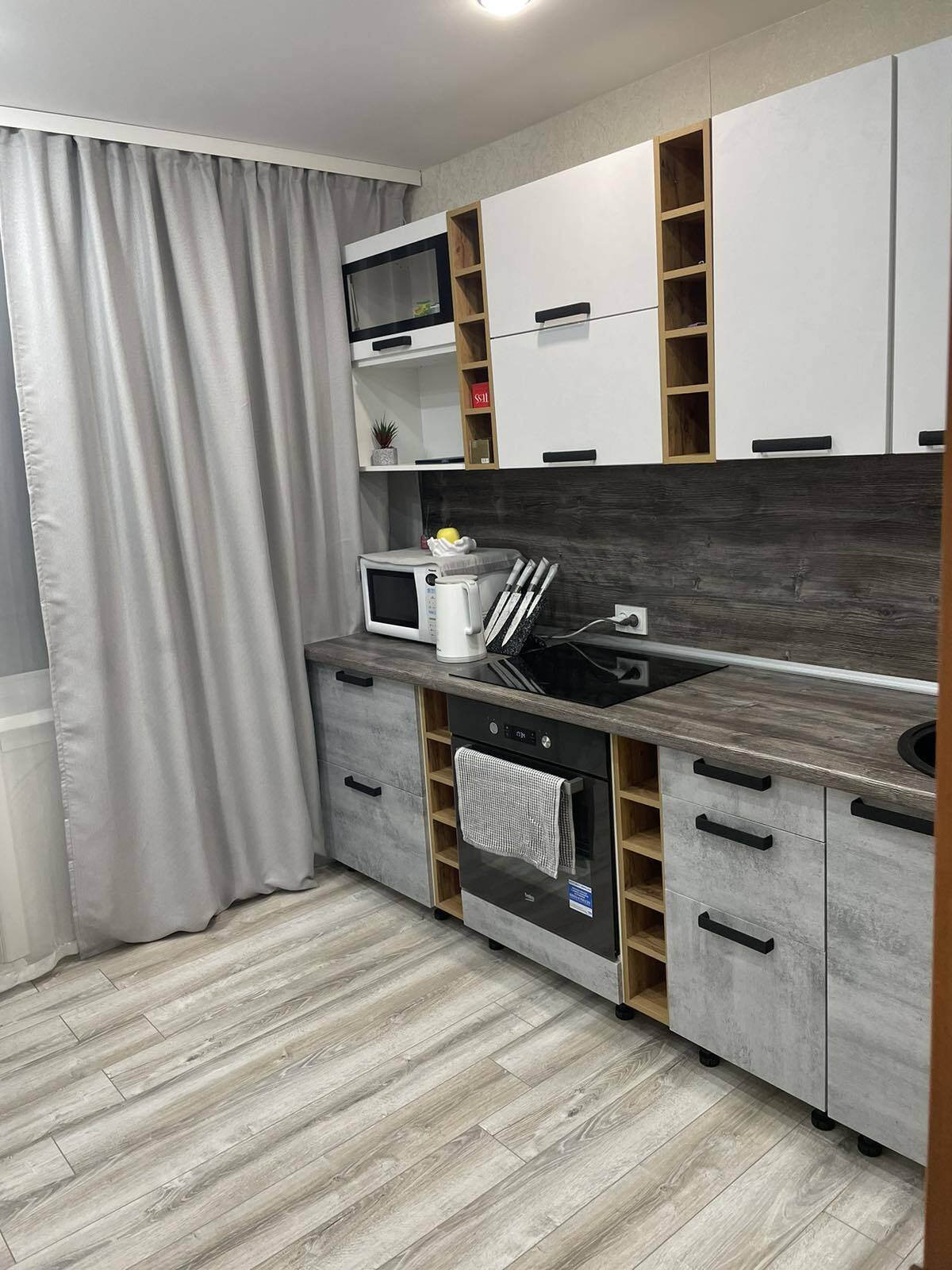 - Удобное размещение бытовой техники: специально предусмотренные места для встроенных приборов.
