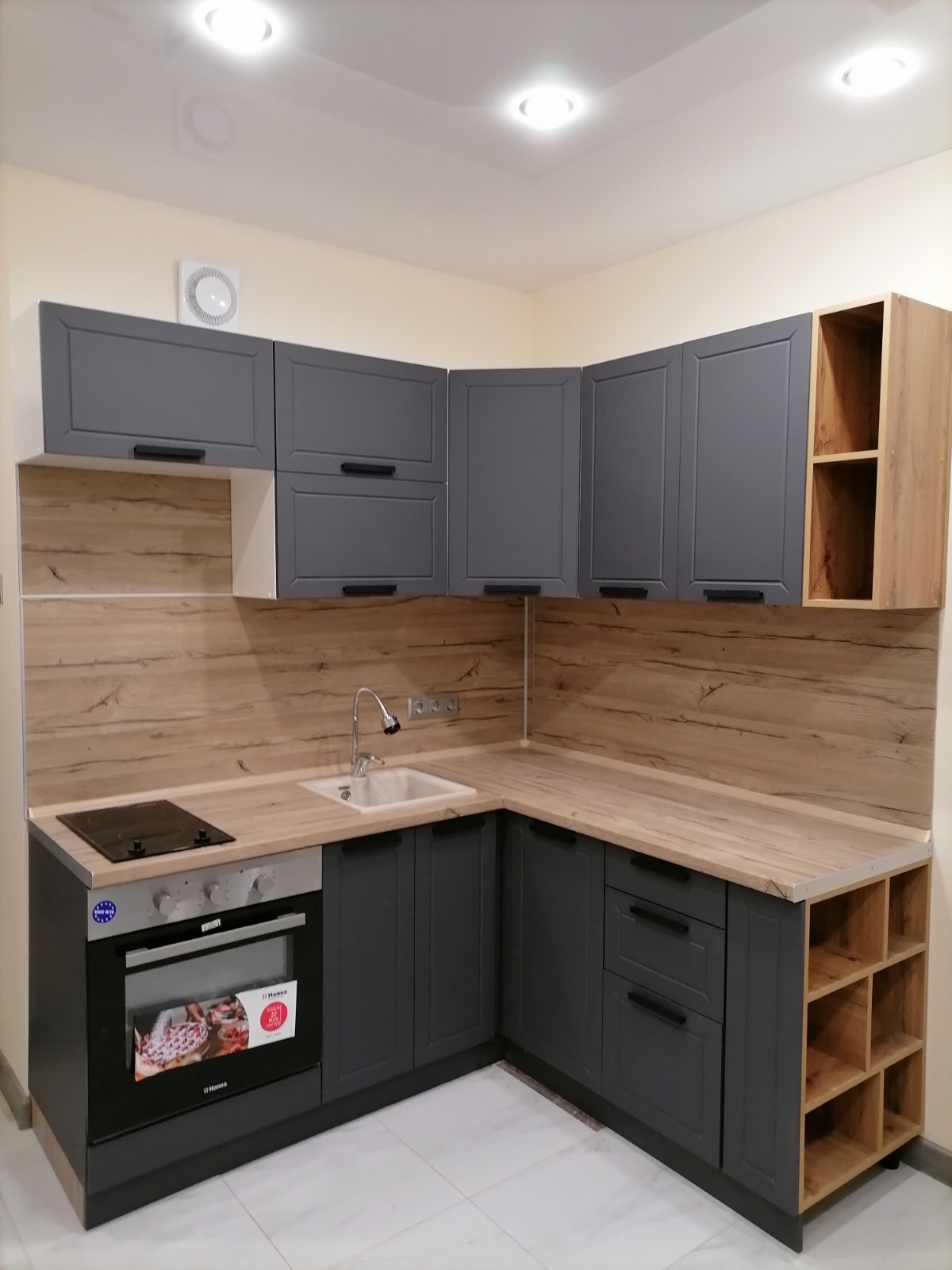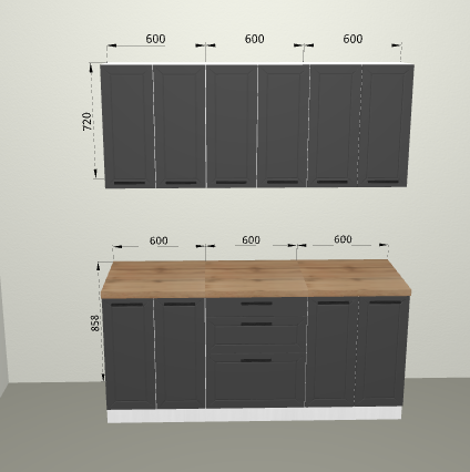 Высококачественные материалы: Кухня изготовлена из прочных и долговечных материалов, которые легко очищаются и устойчивы к повреждениям. Графитовый цвет сохраняет свой внешний вид долгое время, не поддаваясь выцветанию.
