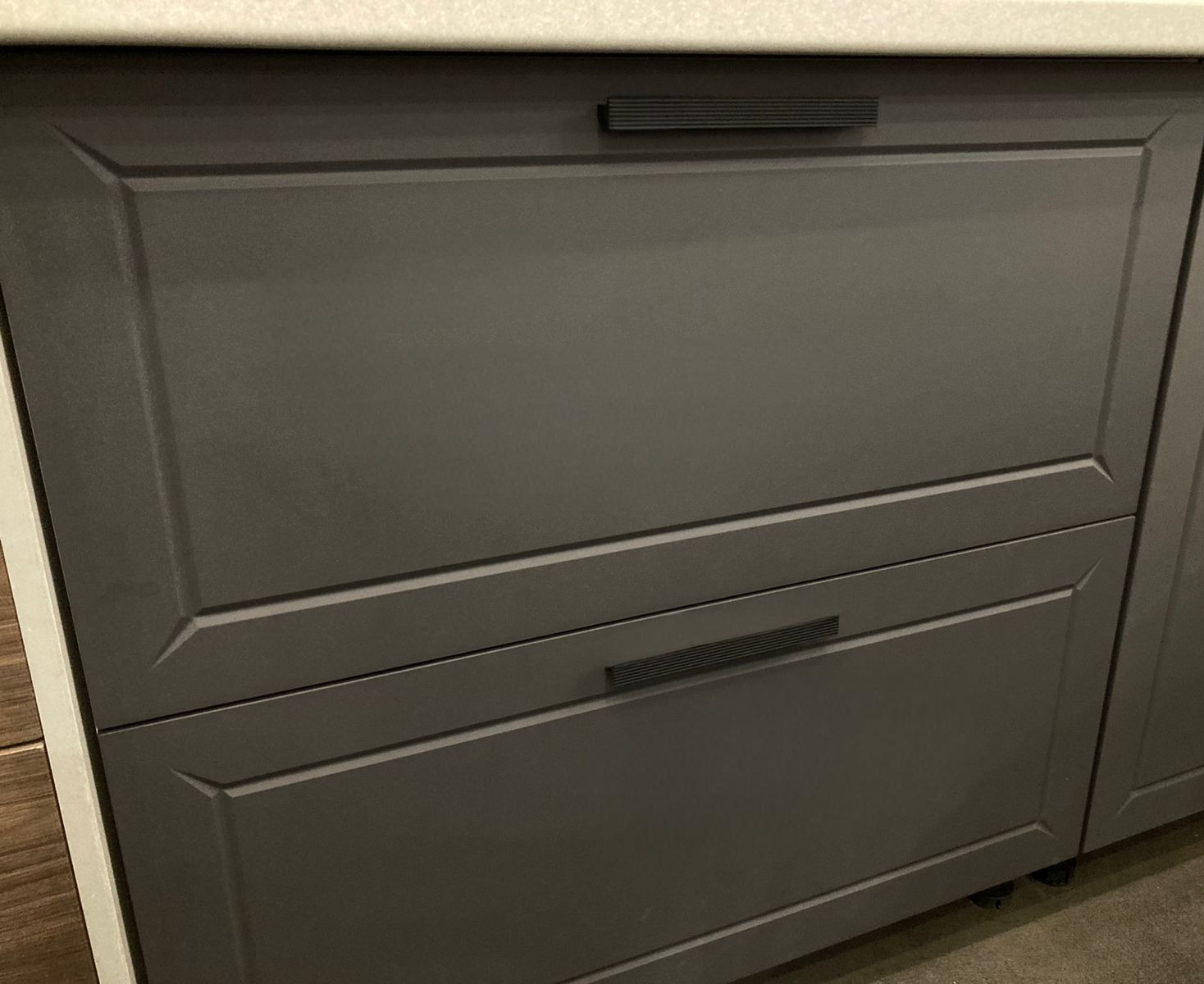 Эстетика и стиль: Эта кухня выполнена в утонченном графитовом цвете, который легко сочетается с любыми отделками и цветами в интерьере. Прямые линии и аккуратные формы создают ощущение строгости и современности, делая кухню универсальным решением для различных стилей.