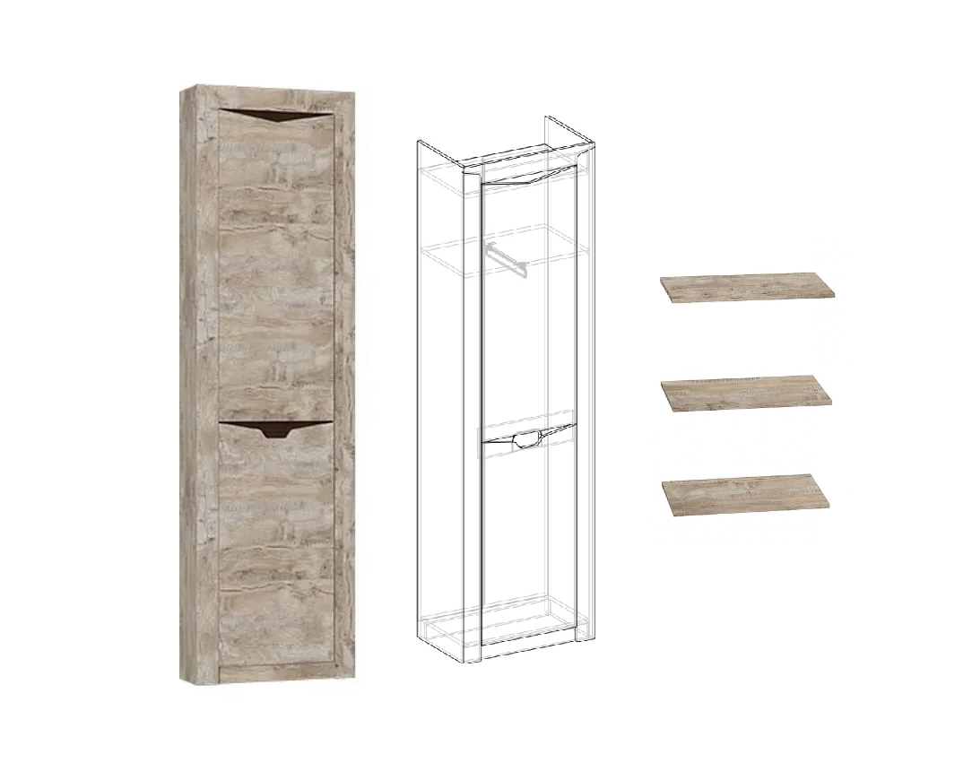 Эта модель включает полки шириной 614 мм, что делает её идеальной для размещения книг, документов или декоративных элементов. Сочетание современных оттенков и продуманной конструкции позволяет вписать пенал в любой интерьер, добавляя ему нотки элегантности и уюта.