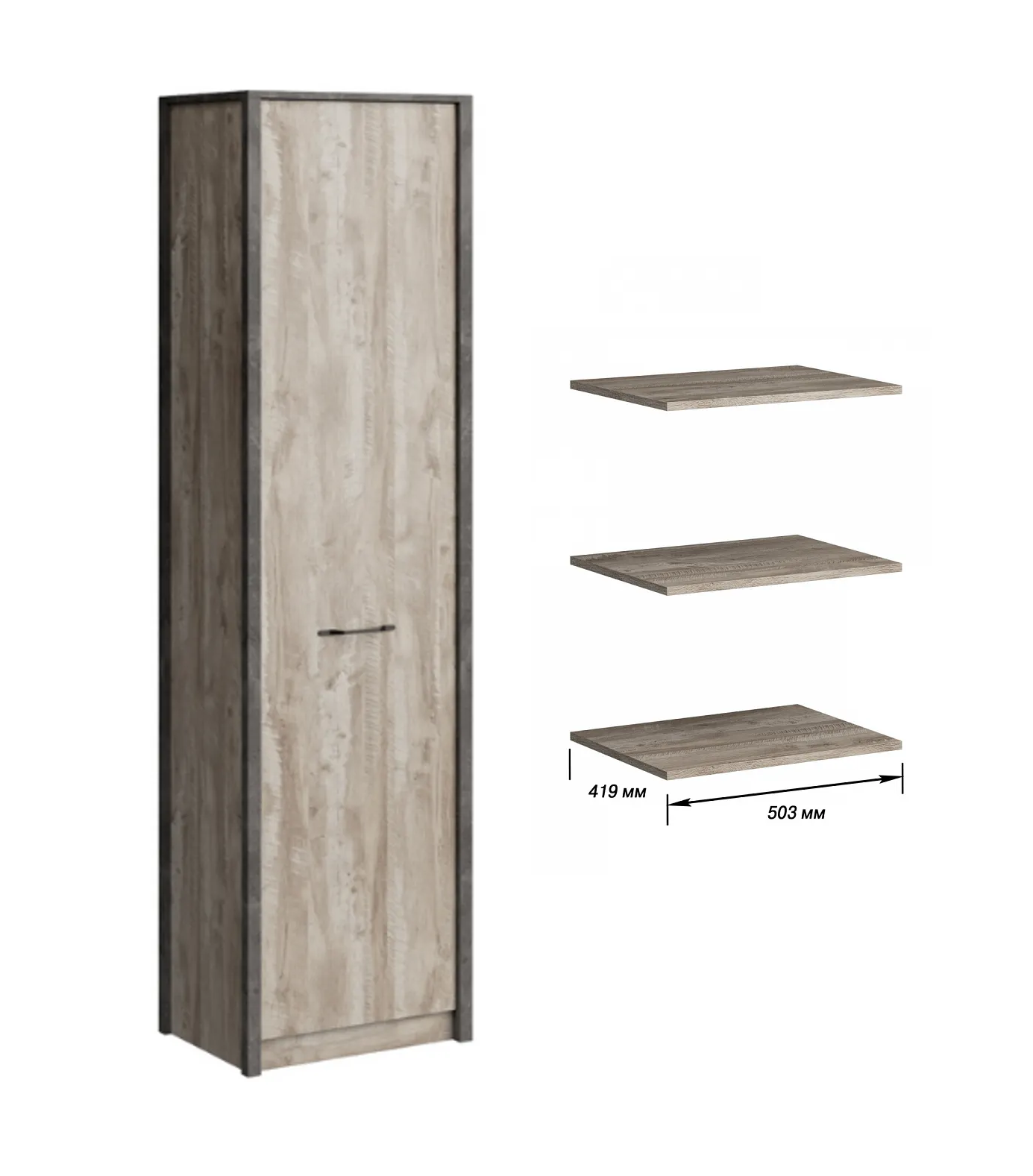 Пенал Клео Дуб Юкон-Ателье темный с полками, ЛДСП, 570x2150x457 мм