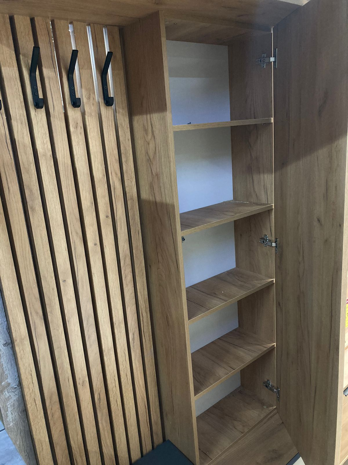 Модель включает в себя несколько удобных секций для хранения вещей, что позволяет организовать пространство максимально эффективно. Встроенные вешалки, отделения для обуви и дополнительные полки помогают поддерживать порядок и обеспечить быстрый доступ к необходимым предметам.