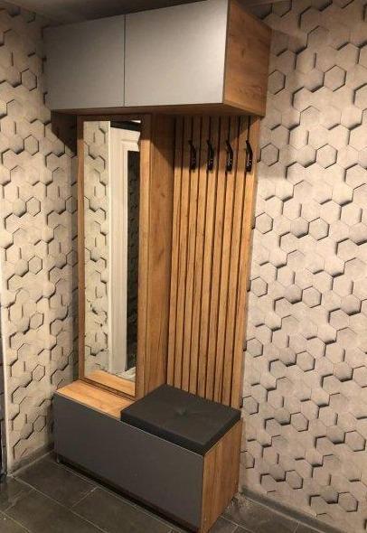 Дополнительные элементы, отделанные кожзамом, не только дополняют визуальный стиль, но и делают поверхность более практичной и лёгкой в уходе. Эти элементы придают прихожей элегантный вид, а также повышают её эксплуатационные характеристики.