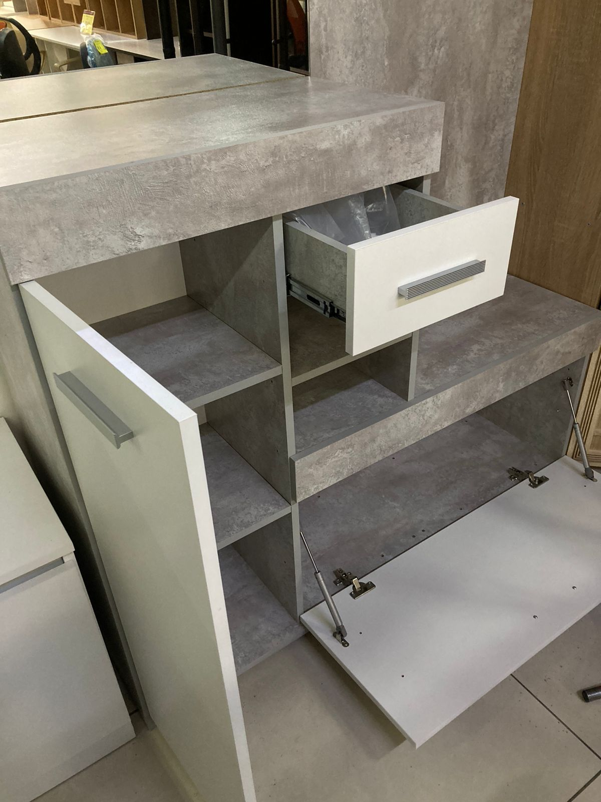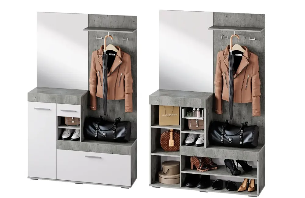 Добавьте элегантность и функциональность в ваш интерьер с помощью стильной прихожей, выполненной в сочетании бетона и белого цвета. Этот элемент мебели идеально подойдет для создания современного и минималистичного стиля в вашем доме.