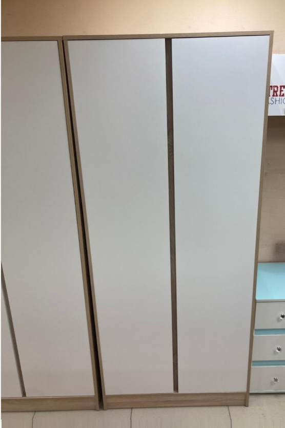 Шкаф изготовлен из высококачественной ламинированной ДСП, что обеспечивает долговечность и устойчивость к механическим повреждениям. Фасад и корпус имеют элегантное исполнение в дубовом цвете сонома в комбинации с белыми элементами, что добавляет мебели уютный и современный вид. Ламинированное ДСП легко чистится, а также не требует специального ухода, что подходит для любителей практичных и стильных решений.