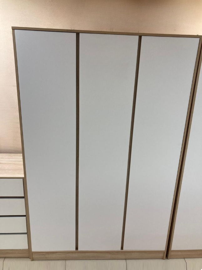 Представляем вашему вниманию стильный и функциональный трёхдверный шкаф от фабрики ТД "Мир мебели". Эта модель, выполненная в нежных тонах дуба сонома и белого, идеально впишется в любой интерьер, добавляя нотки современности и уюта.