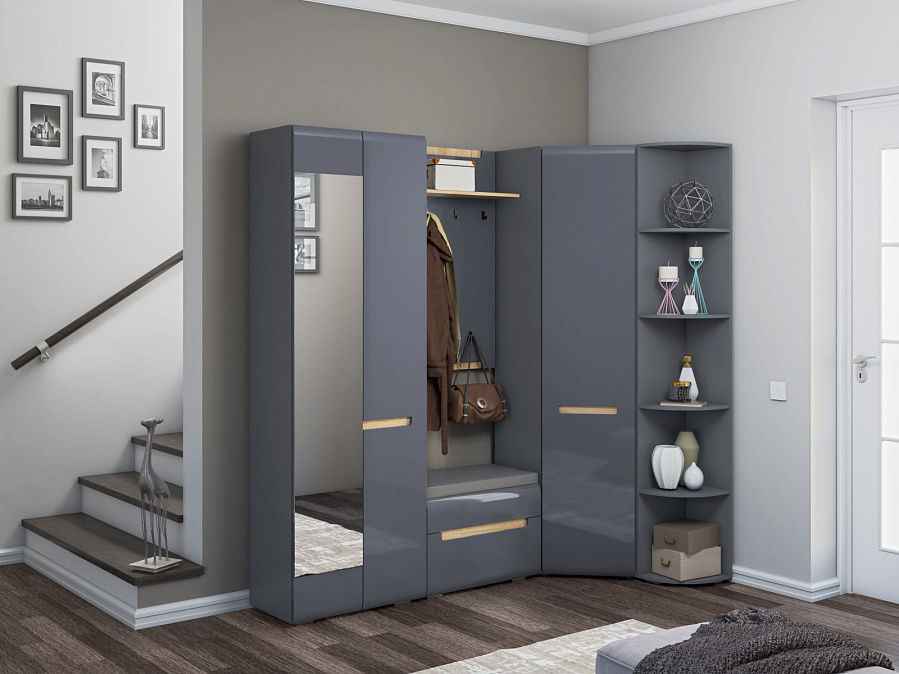 Откройте для себя идеальное сочетание стиля и функциональности с угловым шкафом «Стокгольм». Этот современный шкаф, выполненный в сером графитовом оттенке и графите с глянцевой отделкой, станет изысканным акцентом в любом интерьере. Его уникальный дизайн позволяет эффективно использовать угловое пространство, что делает его идеальным решением для малогабаритных помещений.