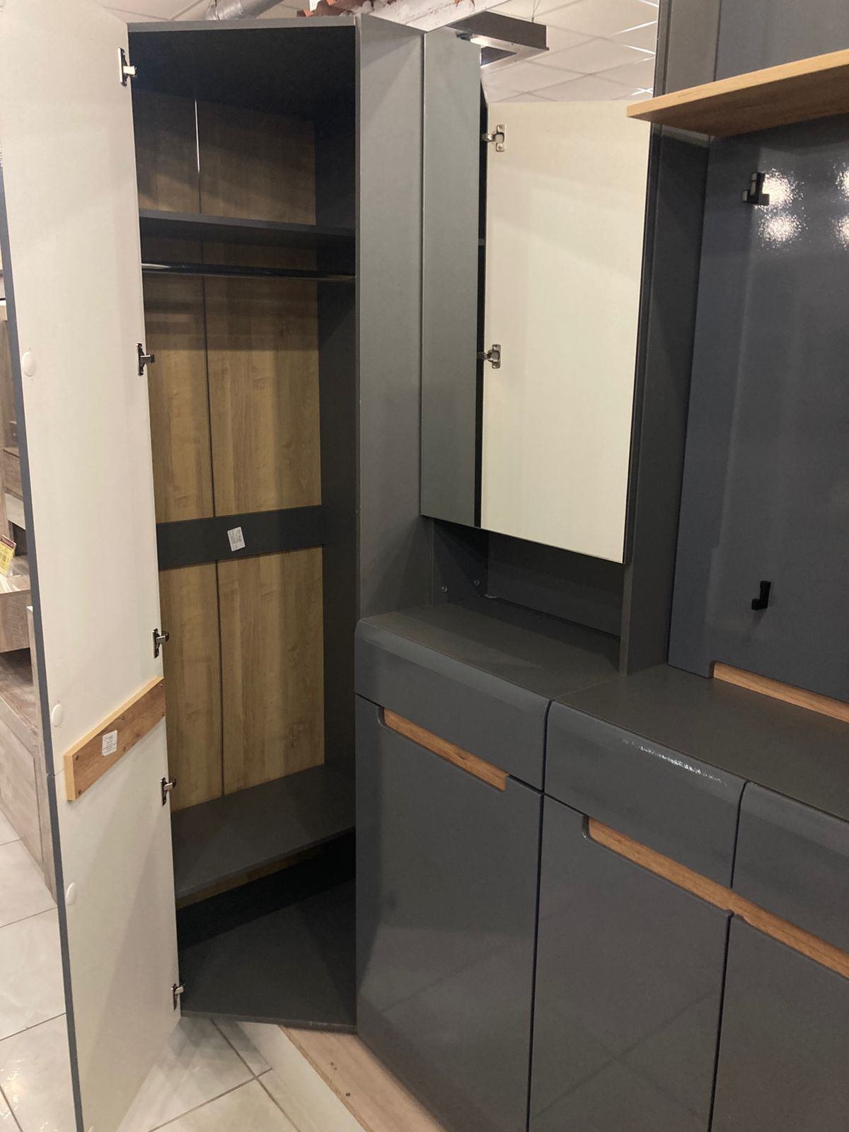Элегантность и функциональность углового шкафа Стокгольм в сером графите