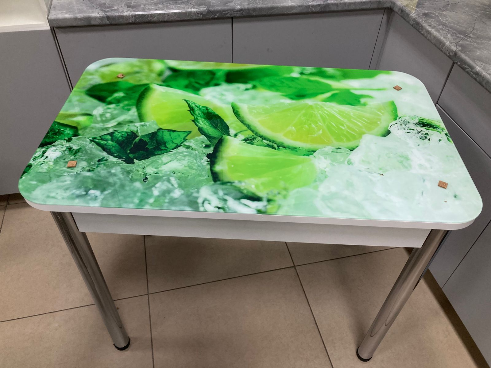 Стол неразд Прямоугольный подстолье прямое хром Царг.пояс белый Ст-ца лайм 2 ф/п стекло (белая) за 9 700 руб. | Столы кухонные обеденные – купить мебель от производителя в Иркутске, Ангарске