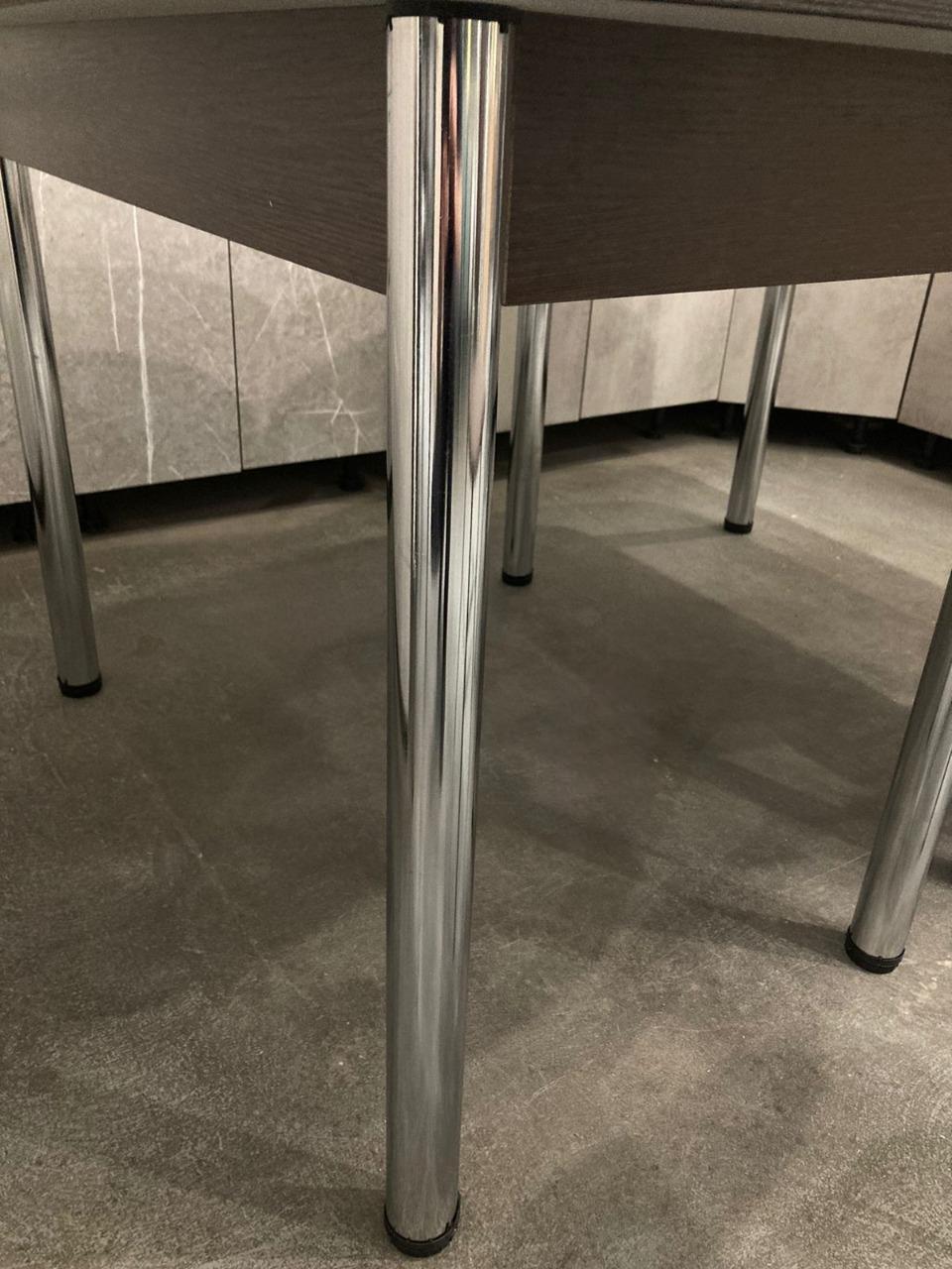 Стол прямоугольной формы с неподвижным подстольем станет идеальным дополнением вашего интерьера. Его стильный хромированный каркас придает изделию современный вид, а царговый пояс из венге добавляет нотку классики. Эта комбинация материалов создает гармоничное сочетание, которое впишется в любой дизайн — от минимализма до уютного классического стиля.