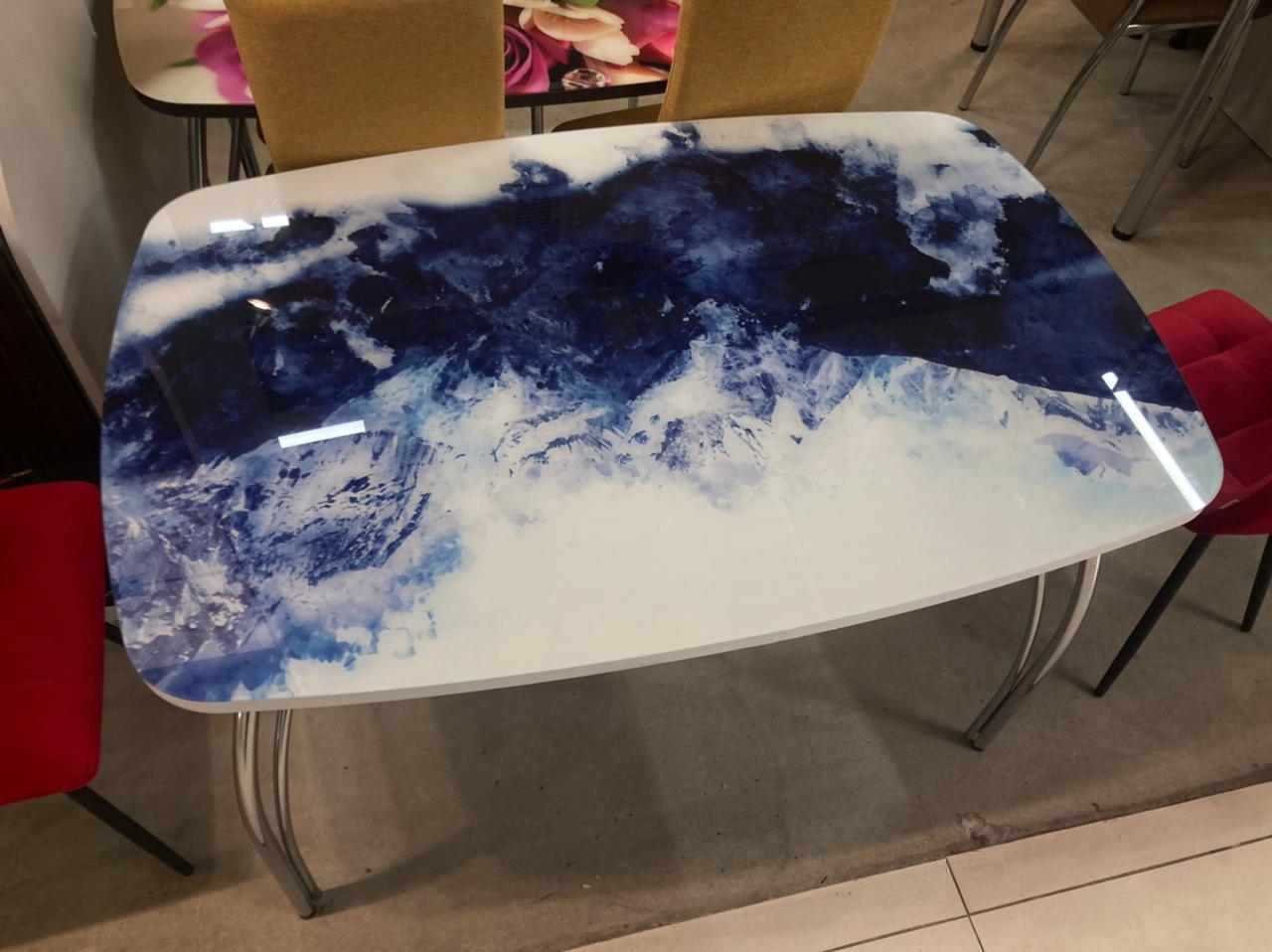 Стол нераздвижной с уникальным подстольем «чайка» из хромированного металла обеспечивает прочность и долговечность. Высококачественное стекло с абстрактным рисунком «Абстракция 2» добавляет нотки современности и индивидуальности в интерьер вашего дома или офиса.