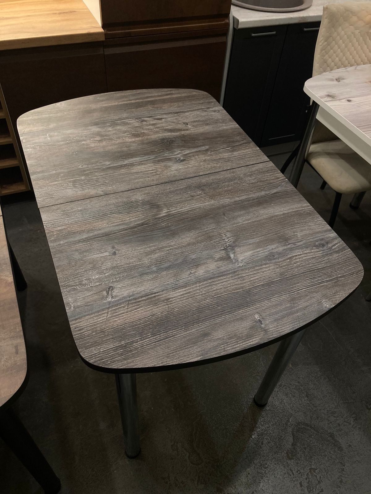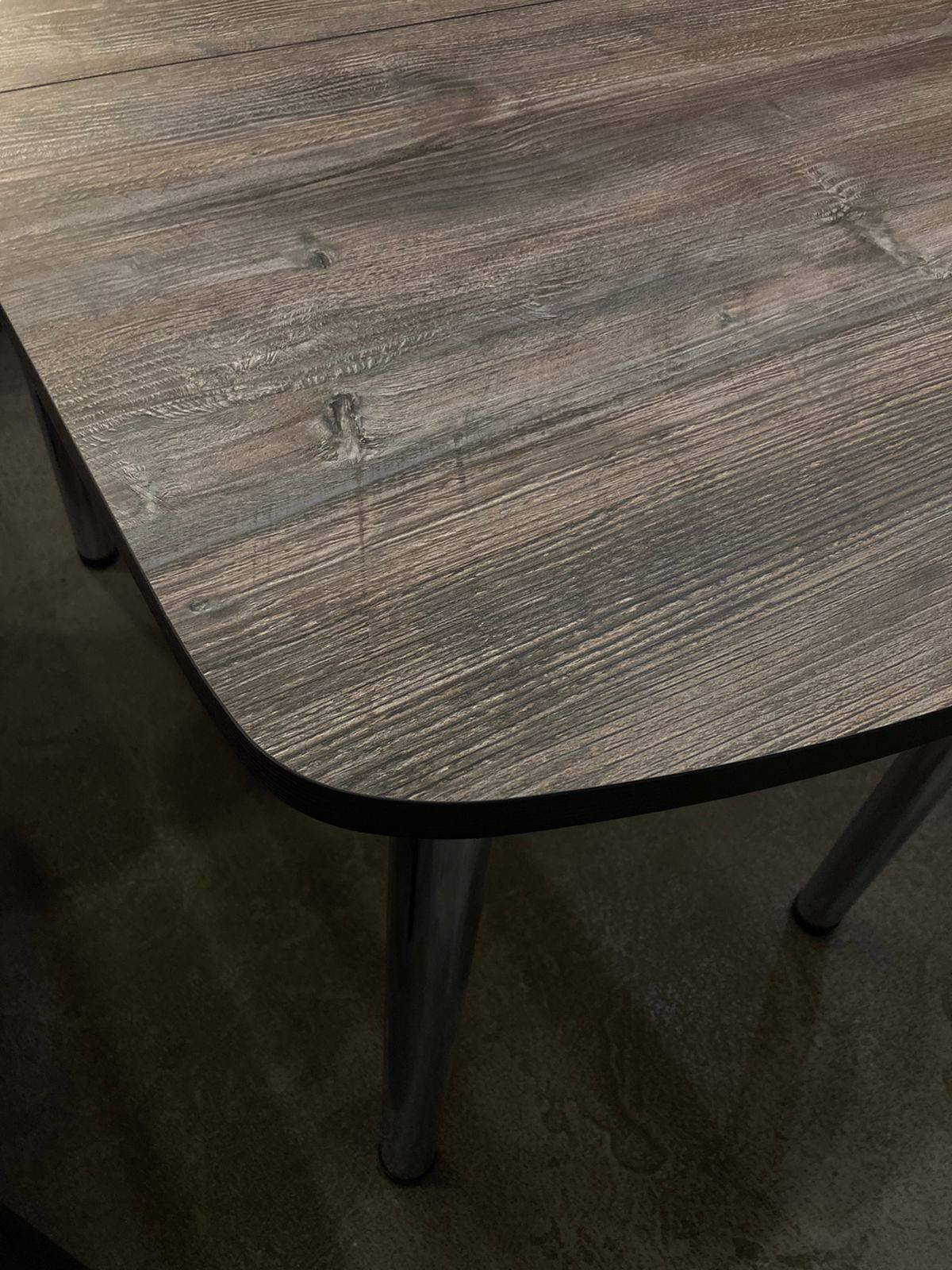 Идеальное решение для интерьера - раздвижной пластиковый стол от фабрики ВВР с хромированным подстольем и фасадом из ЛДСП в стиле венге сосна пандероса