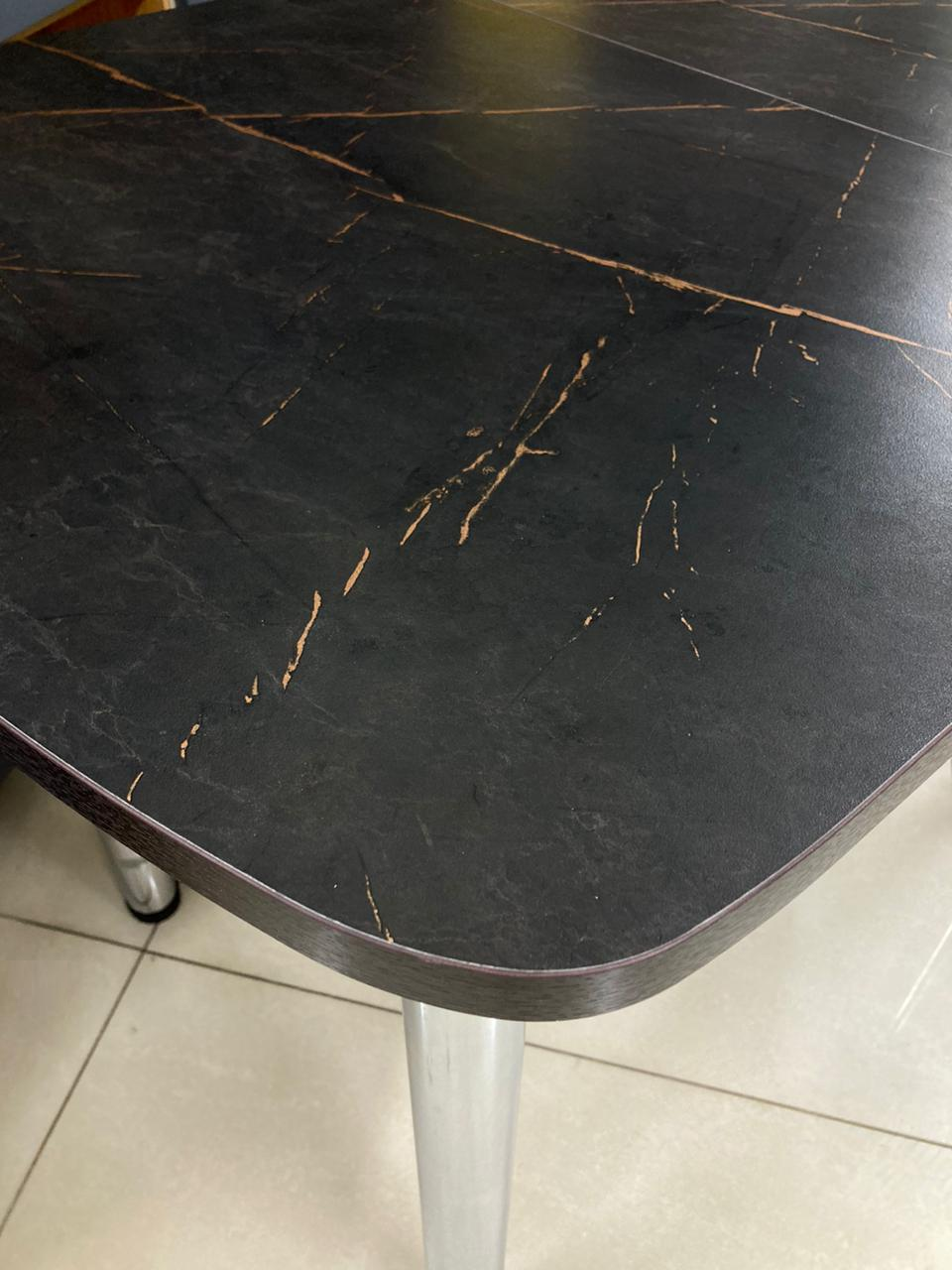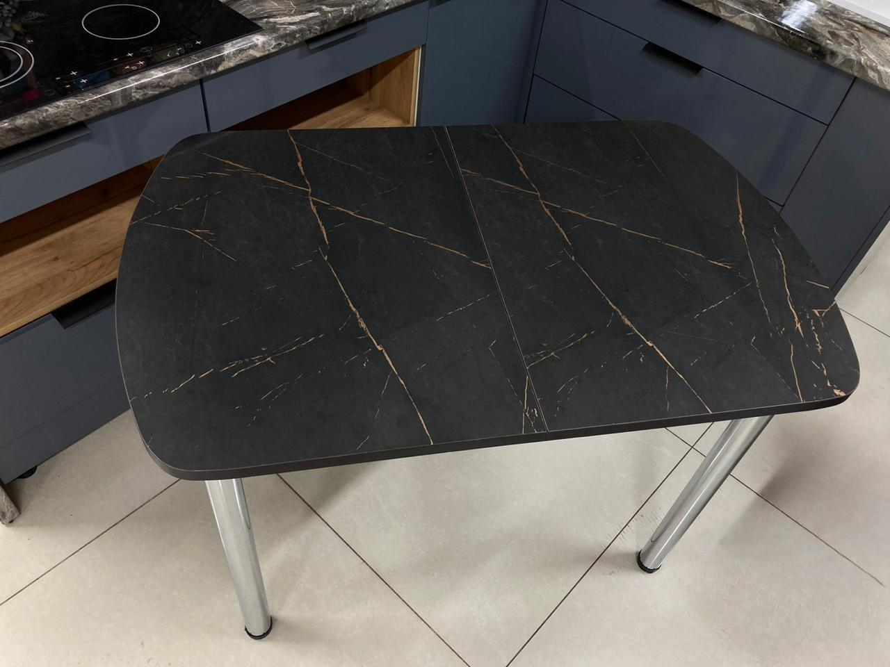 Стол раздвижной Пластиковый подстолье прямое хром Царг.пояс венге Ст-ца каспий черное золото (венге) шириной 1100, высотой 770, глубиной 700 от фабрики производителя мебели ВВР с фасадом из ЛДСП