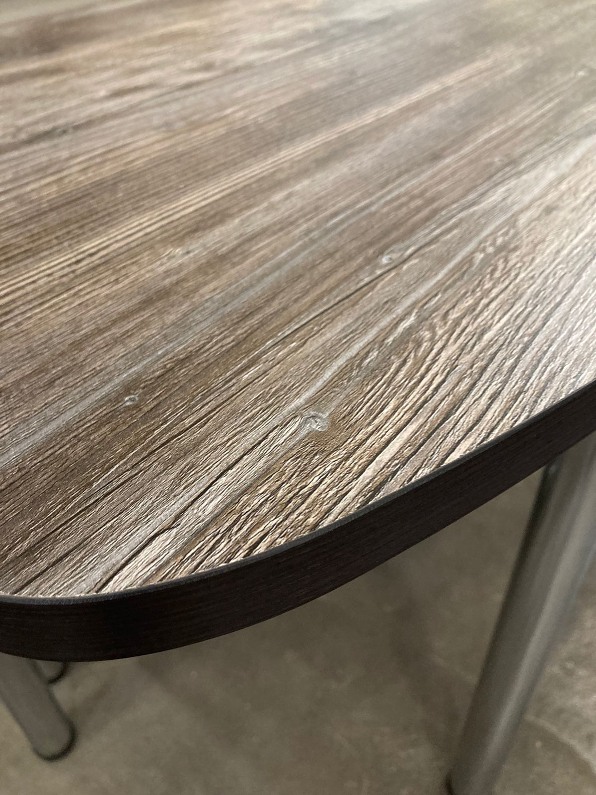 Современный и стильный раздвижной стол от фабрики ВВР сочетание пластика и хрома с фасадом из ЛДСП в цвете сосна пандероса (венге)