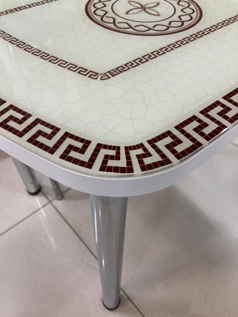 Стол раздвижной Стеклянный подстолье прямое хром Царг.пояс белый Ст-ца греческий белый (белая) ф-п шириной 1100, высотой 770, глубиной 700 от фабрики производителя мебели ВВР с фасадом из ЛДСП и стекла