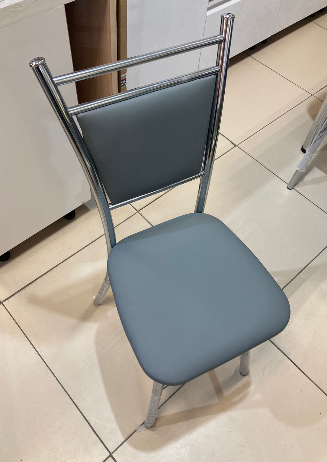 Элегантный стул с хромированным каркасом и серым экокожаным покрытием