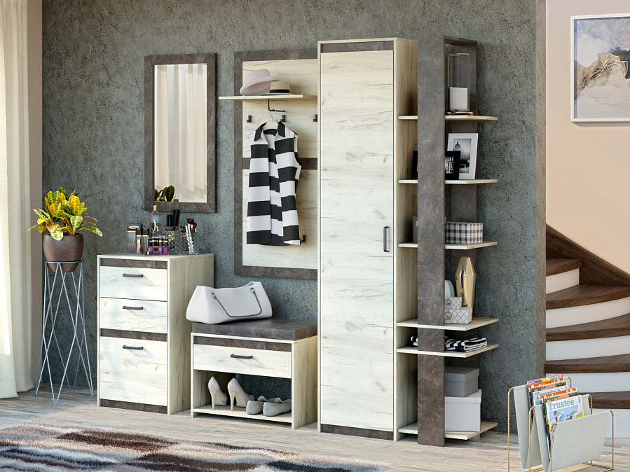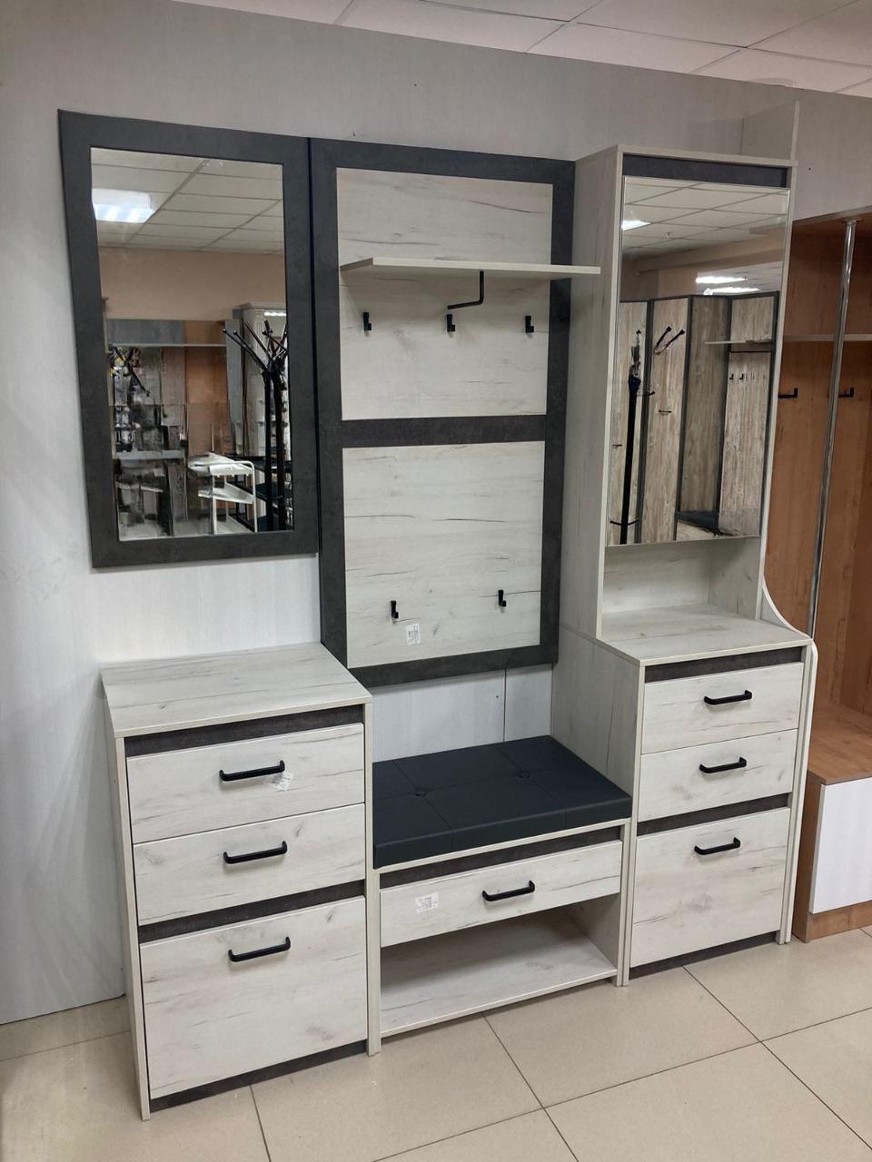 Зеркало к тумбе в прихожую Прага дуб белый крафт/ателье темное от фабрики МЕБЕЛЬ МАРКЕТ с фасадом из ЛДСП